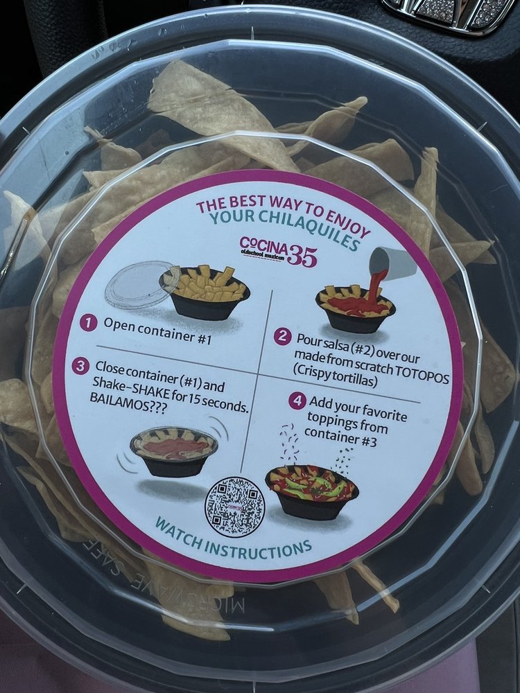 Cant decide which one you want to try? Choose 2 salsas For better Quality and Crunchiness all chilaquiles may be served Deconstructed .. Please follow instructions on the package!